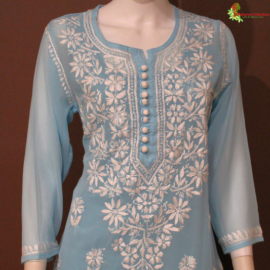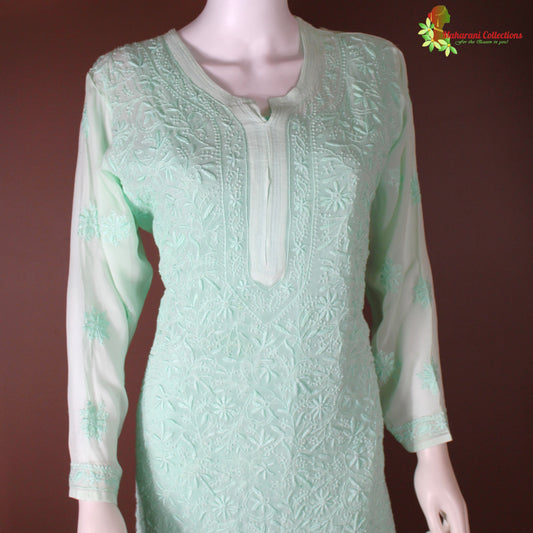Maharani's Lucknowi Georgette Kurta Top - Light Green (XL)