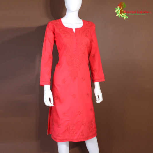 Maharani's Soft Cotton Lucknowi Kurta Top - Red (M)