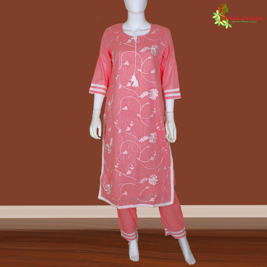 Maharani's Salwar Suit Set - Peach (L) - Cotton Silk