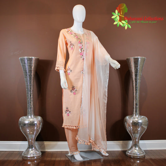 Maharani's Suit with Pants and Dupatta - Peach (M) - Pure Muslin Silk