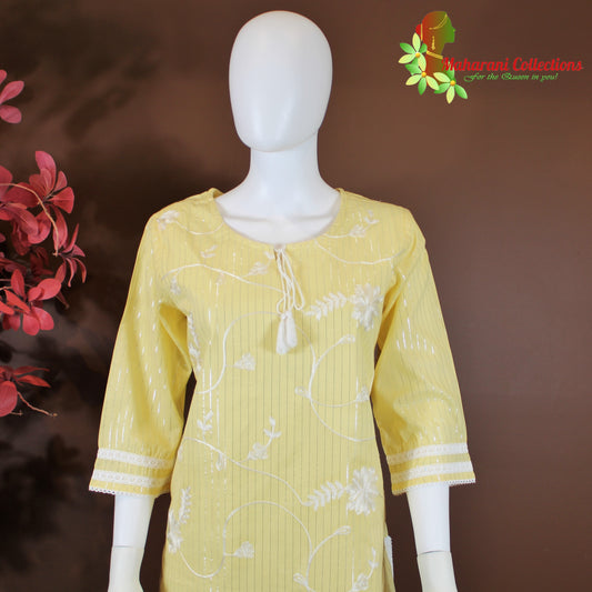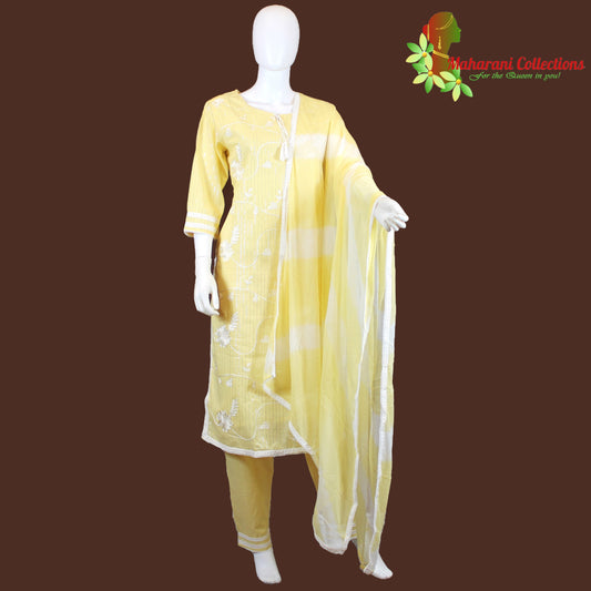 Maharani's Suit with Pants and Dupatta - Lemon Yellow (L) - Pure Muslin Silk