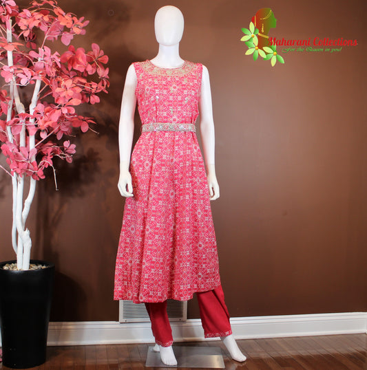 Maharani's Suit with Pants and Dupatta - Pink (L) - Pure Muslin Silk