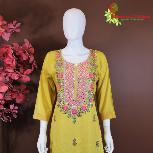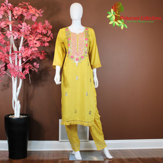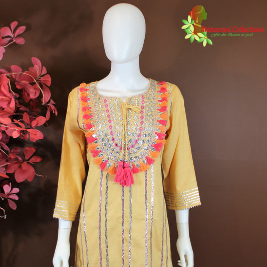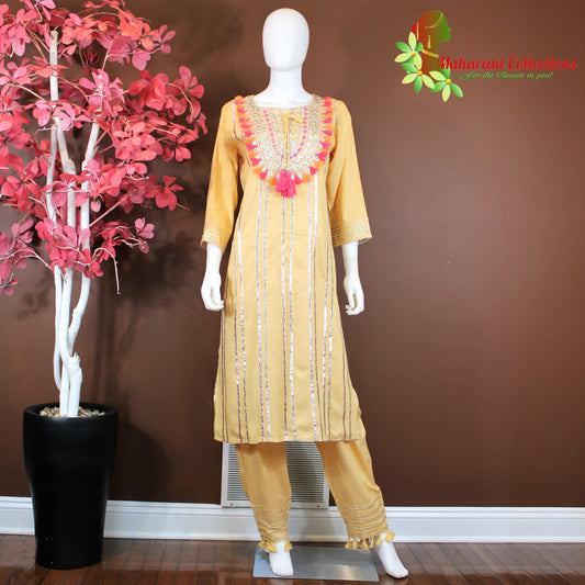 Maharani's Kaftan Suit - Muslin Silk - Mustard Yellow (S, M, L)