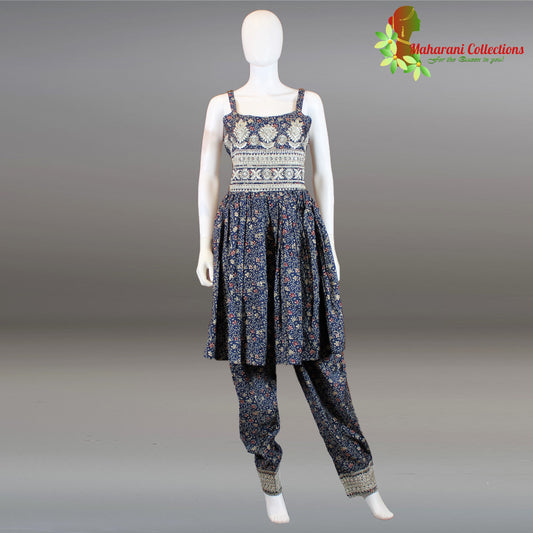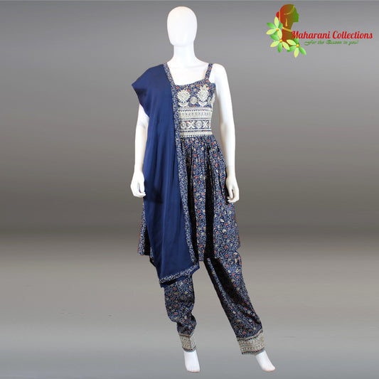 Maharani's Suit with Pants and Dupatta - Royal Blue (S) - Pure Muslin Silk