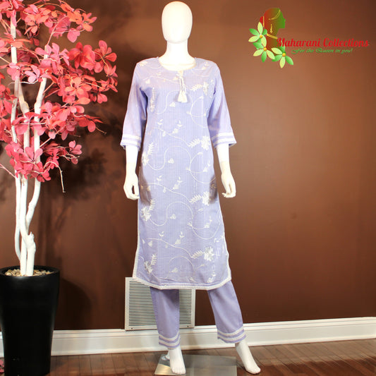 Maharani's Suit with Pants and Dupatta - Light Purple (L) - Pure Muslin Silk