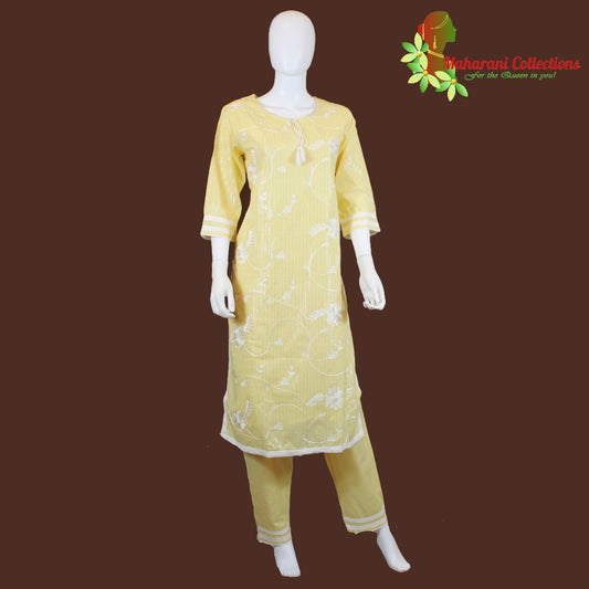 Maharani's Suit with Pants and Dupatta - Lemon Yellow (M) - Pure Muslin Silk