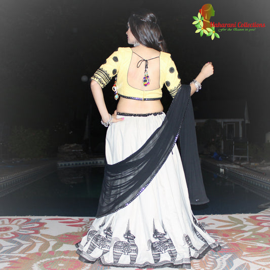 Maharani's Festive Chania Choli with Dupatta - Yellow/White (M)