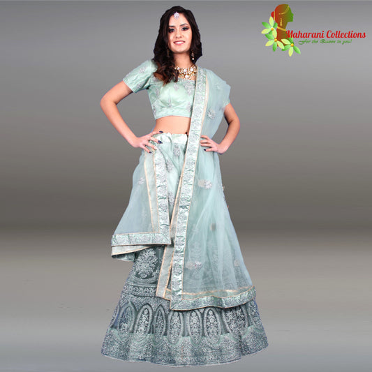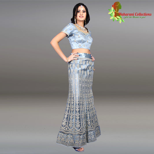 Maharani's Designer Net-Silk Lehenga - Light Blue with Zari and Sequins Embroidery