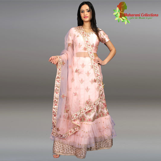 Maharani's Designer Net-Silk Lehenga - Light Pink with Zari Embroidery