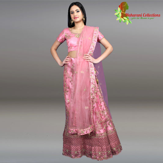 Maharani's Designer Net-Silk Lehenga - Pink with Golden Zari and Sequins Embroidery
