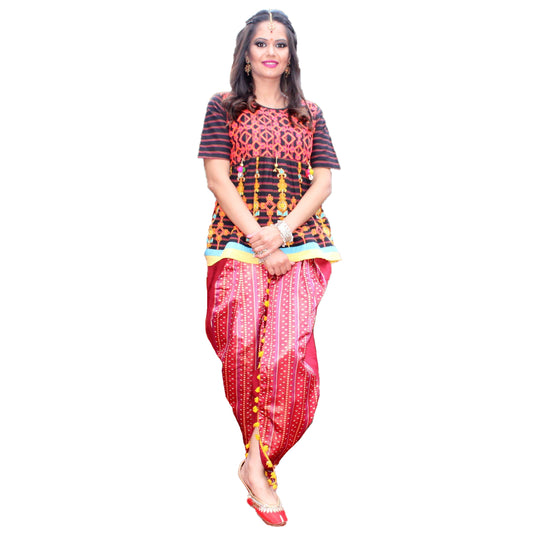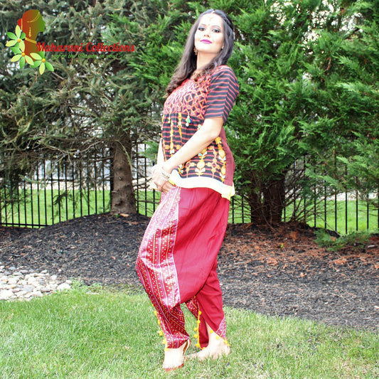 Maharani's Tulip Pant and Choli (Dhoti Choli) - Red (M)