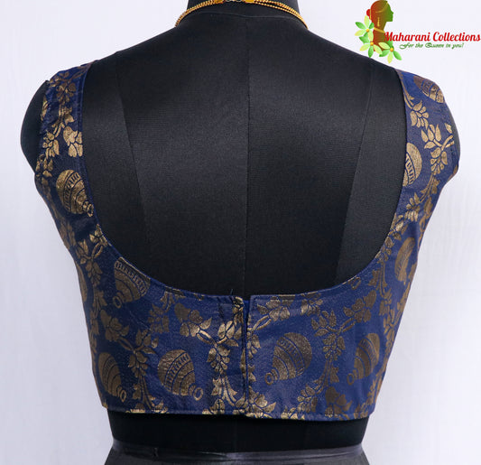 Maharani's Linen Silk Banarasi Brocade Blouse - Navy Blue
