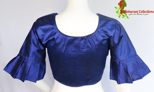 Maharani's Linen Silk Readymade Blouse - Navy Blue
