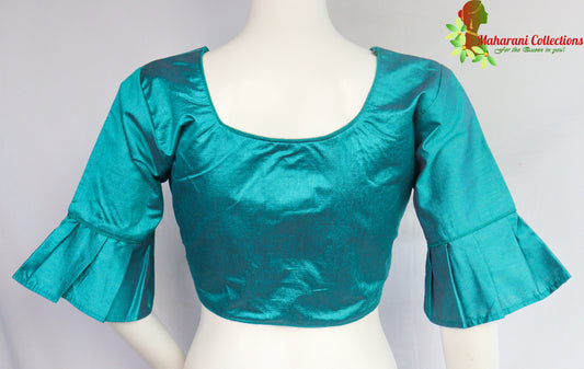 Maharani's Linen Silk Readymade Blouse - Turquoise Blue
