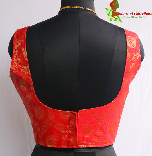 Maharani's Linen Silk Banarasi Brocade Blouse - Orange