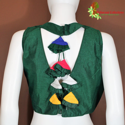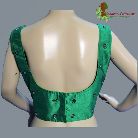 Maharani's Linen Silk Padded Sleeveless Blouse - Green