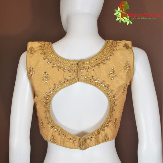 Maharani's Linen Silk Golden Zari Blouse - Golden