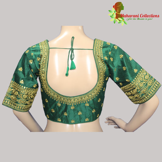 Maharani's Linen Silk Golden Zari Blouse - Green