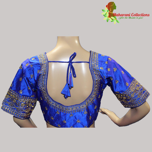 Maharani's Linen Silk Golden Zari Blouse - Blue