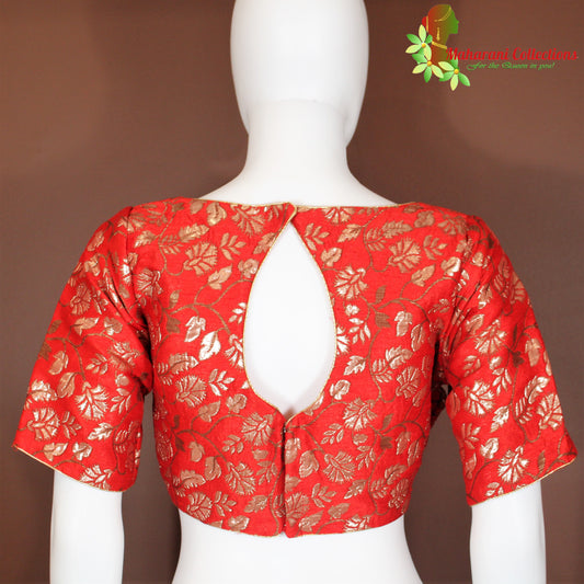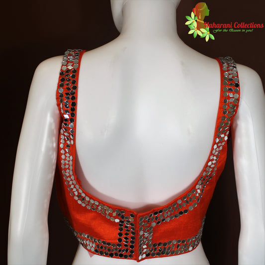 Maharani's Linen Silk Mirror Work Blouse - Orange
