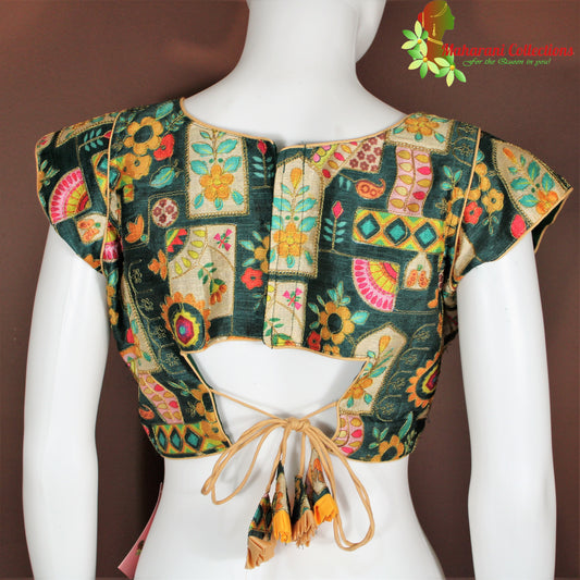 Maharani's Linen Silk Golden Zari Blouse - Green
