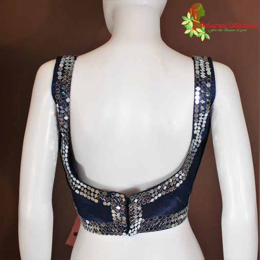 Maharani's Linen Silk Mirror Work Blouse - Navy Blue