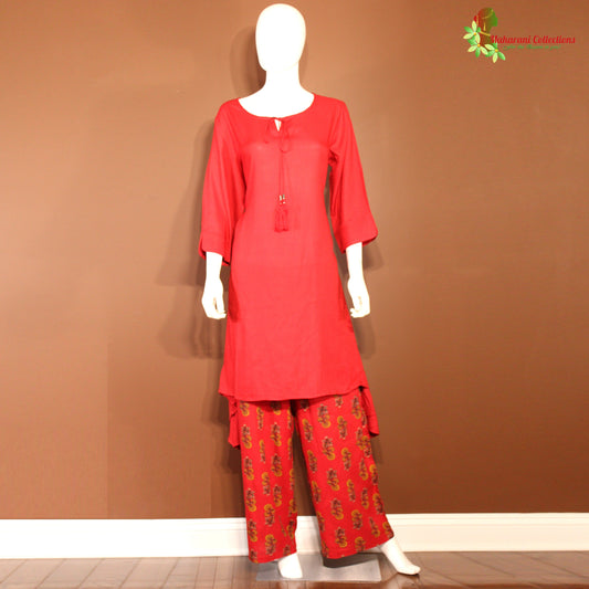 Maharani's Palazzo Suit Set - Soft Cotton - Red (L)