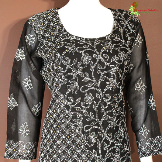 Maharani's Lucknowi Chikankari Palazzo Suit - Black (L) - Pure Georgette