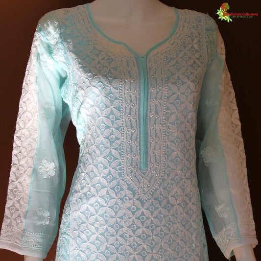 Maharani's Lucknowi Chikankari Palazzo Suit - Light Blue (L) - Pure Georgette