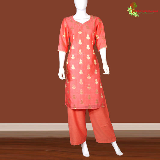Maharani's Silk Palazzo Suit Set - Coral Pink (M)