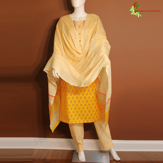 Maharani's Pure Cotton Palazzo Suit Set - Yellow (L)