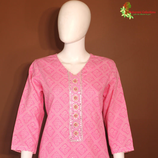 Maharani's Soft Cotton Palazzo Suit Set - Pink (L)