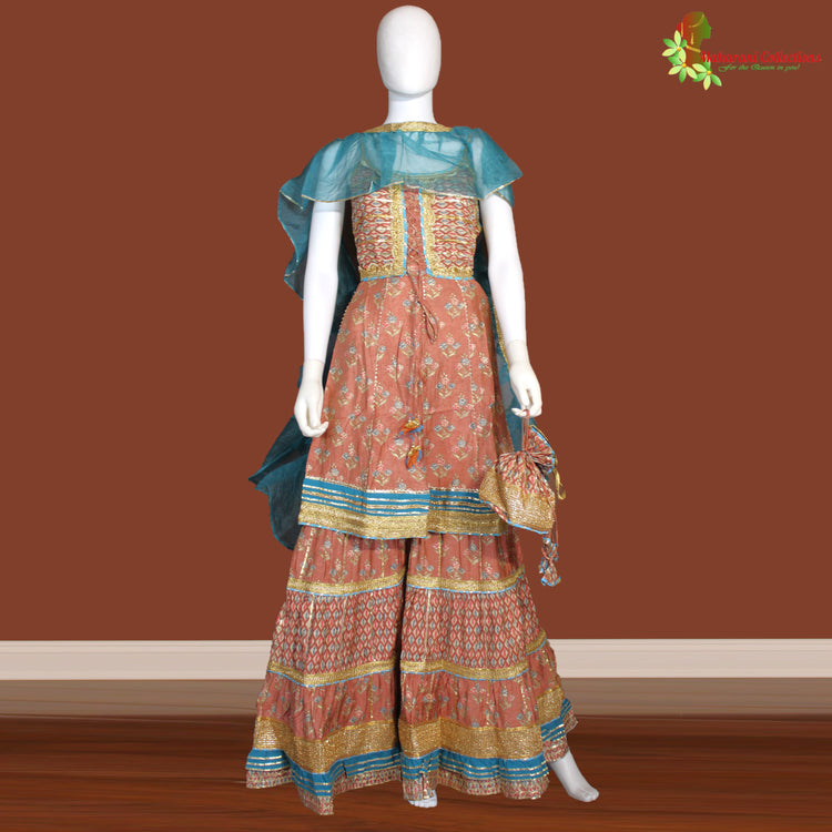 Maharani's Sharara Suit - Muslin Silk - Peach (S, M, L, XL)