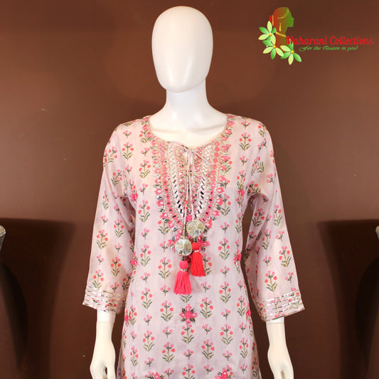 Maharani's Sharara Suit - Light Pink (M) - Pure Muslin Silk
