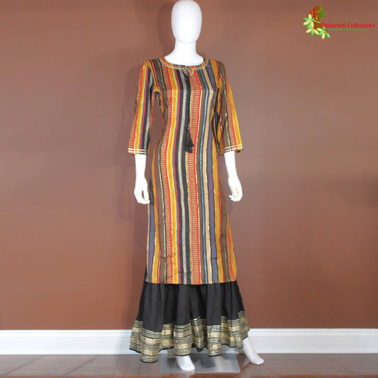 Maharani's Sharara Suit - Soft Silk - Black Multicolor (S, M, XL)