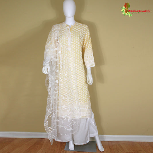 Maharani's Sharara Suit - Light Yellow (XL) - Pure Cotton