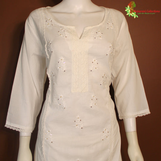 Maharani's Sharara Suit - Soft Cotton - White (XXL)
