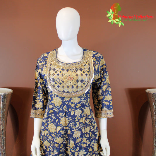 Maharani's Designer Linen Silk Sharara Suit - Blue (L, XL)