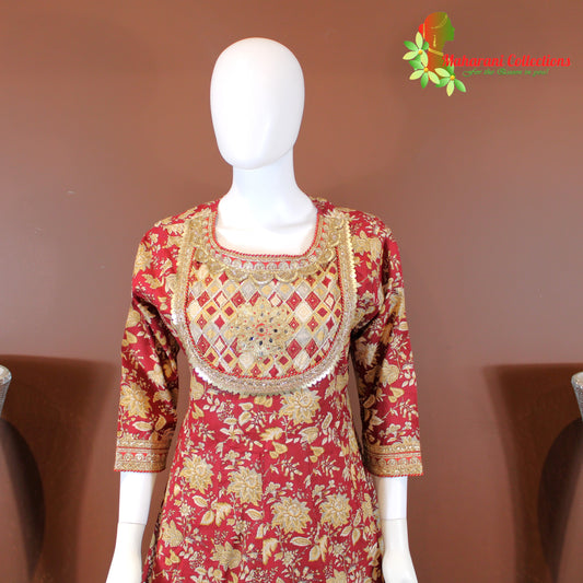 Maharani's Designer Linen Silk Sharara Suit - Maroon (M, L, XL)