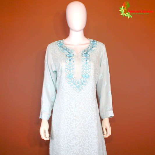 Maharani's Lucknowi Sharara Suit - Sky Blue (XL) - Pure Georgette