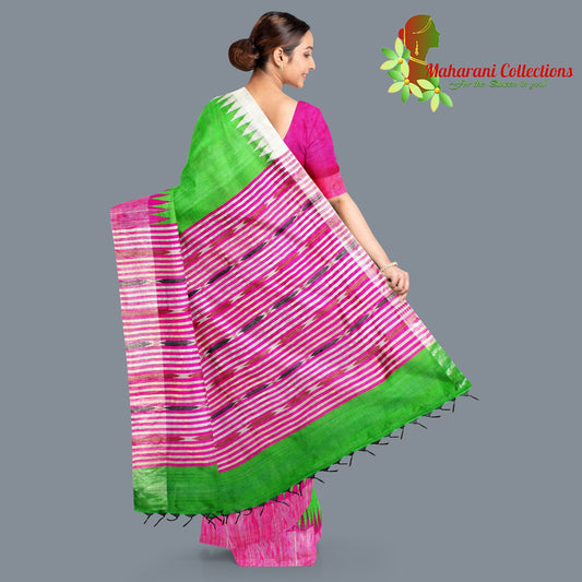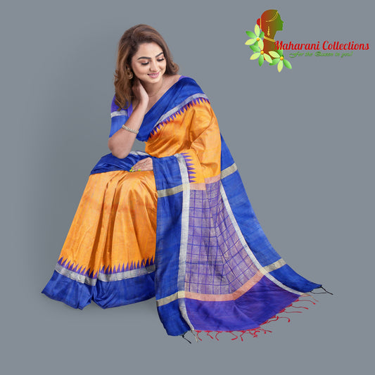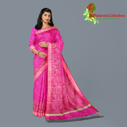 Pure Tussar Silk Saree (Silk Mark) - Beige with Magenta Temple Border and Magenta Pallu.