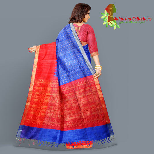 Pure Tussar Silk Saree (Silk Mark) - Blue (with Stitched Blouse & Petticoat)