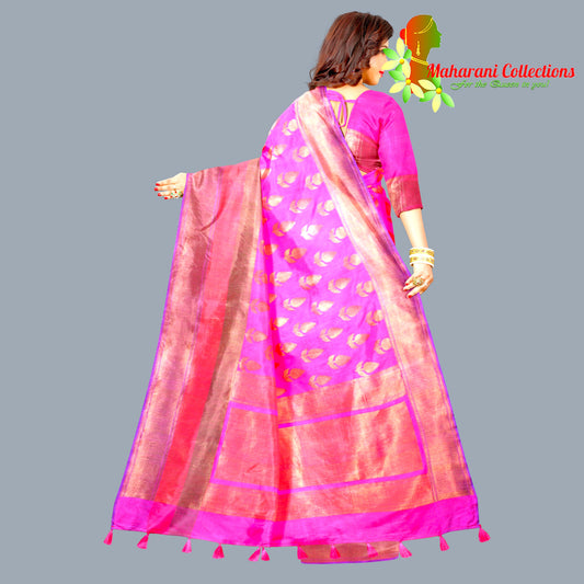 Maharani's Pure Banarasi Silk Saree - Magenta (with stitched Blouse and Petticoat)