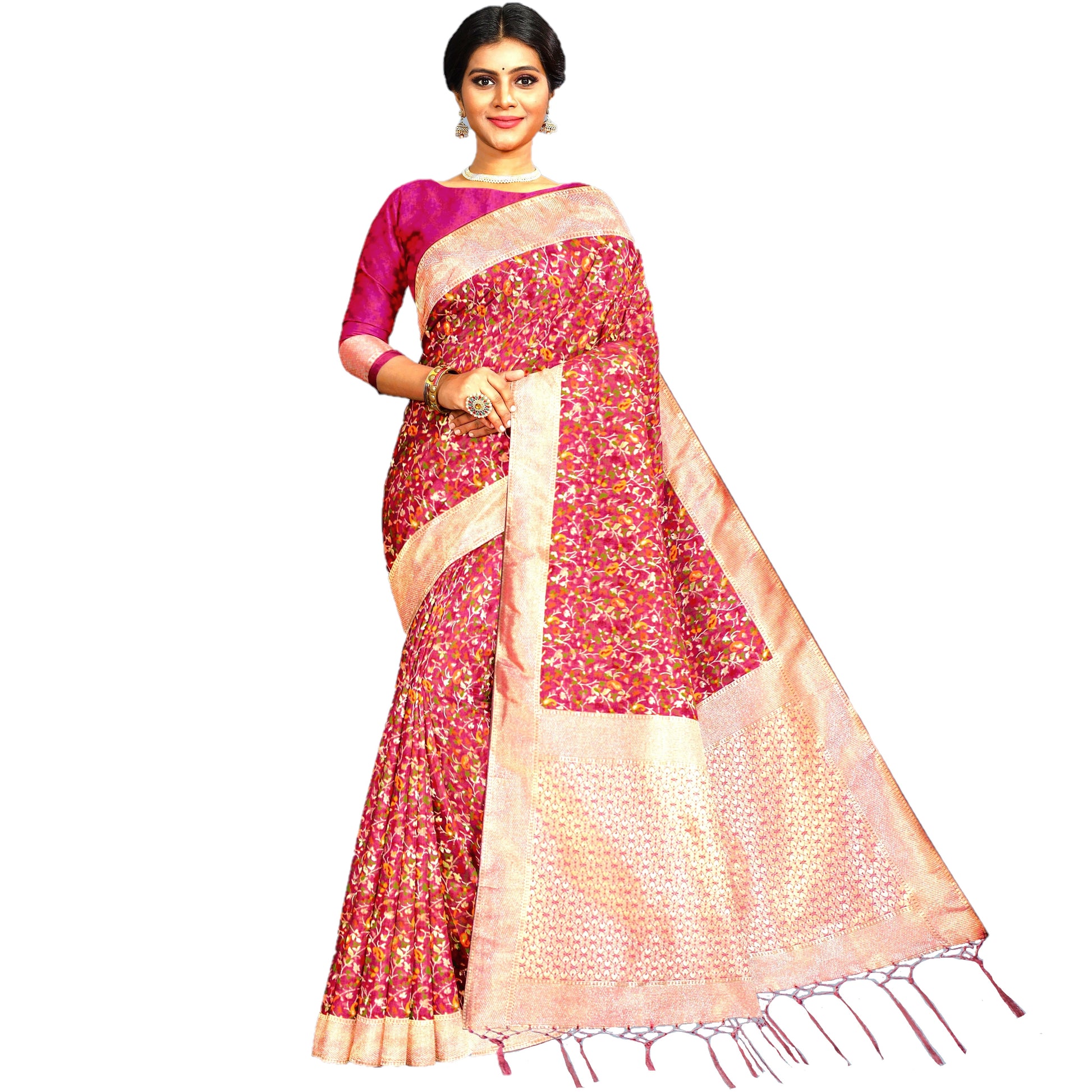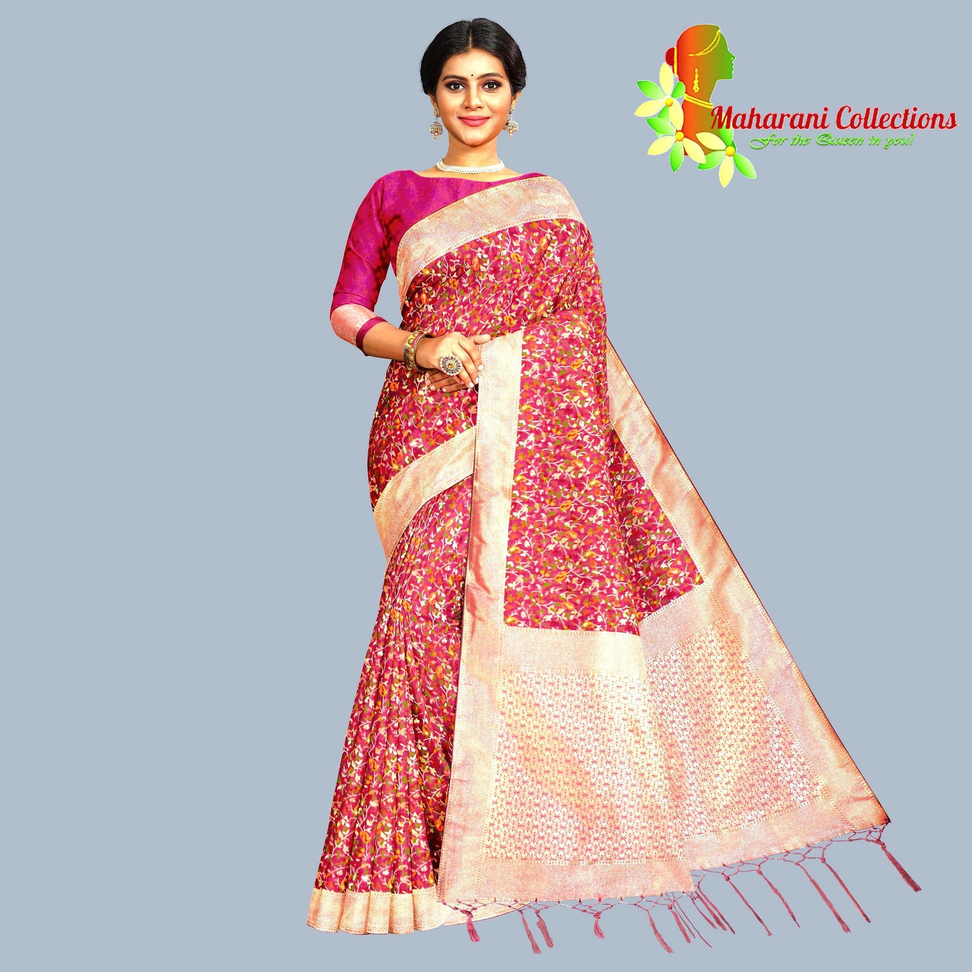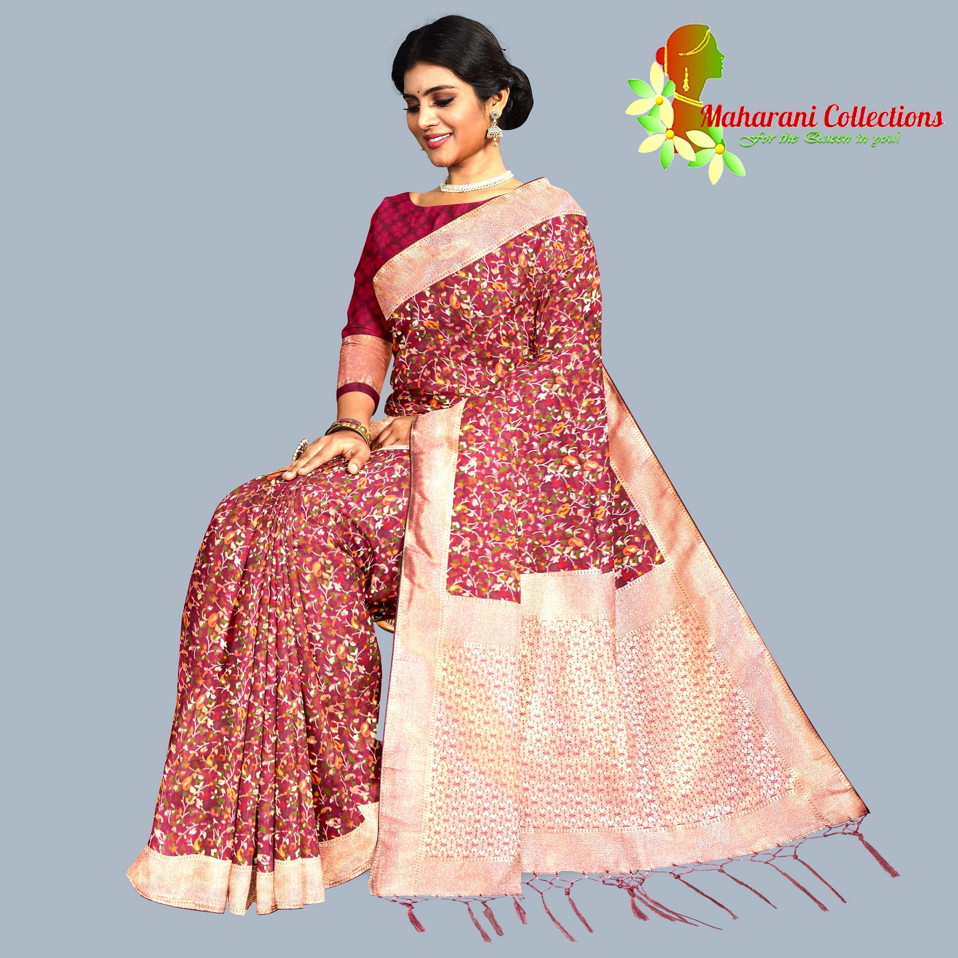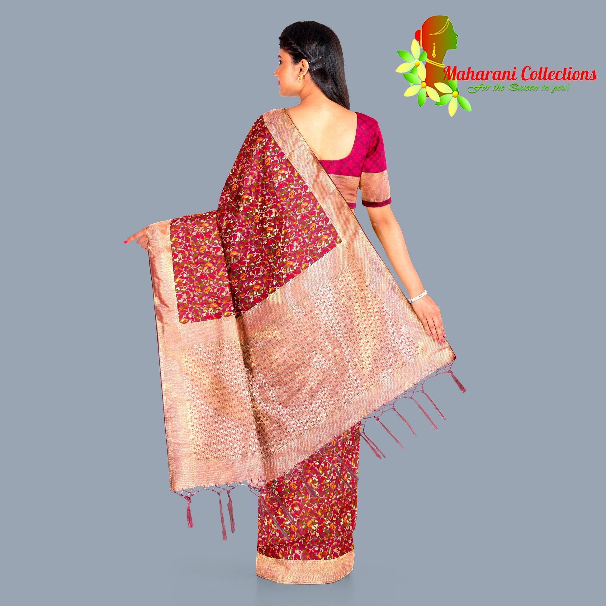 Maharani's Pure Banarasi Jamdani Silk Saree - Purple (with stitched blouse and petticoat)