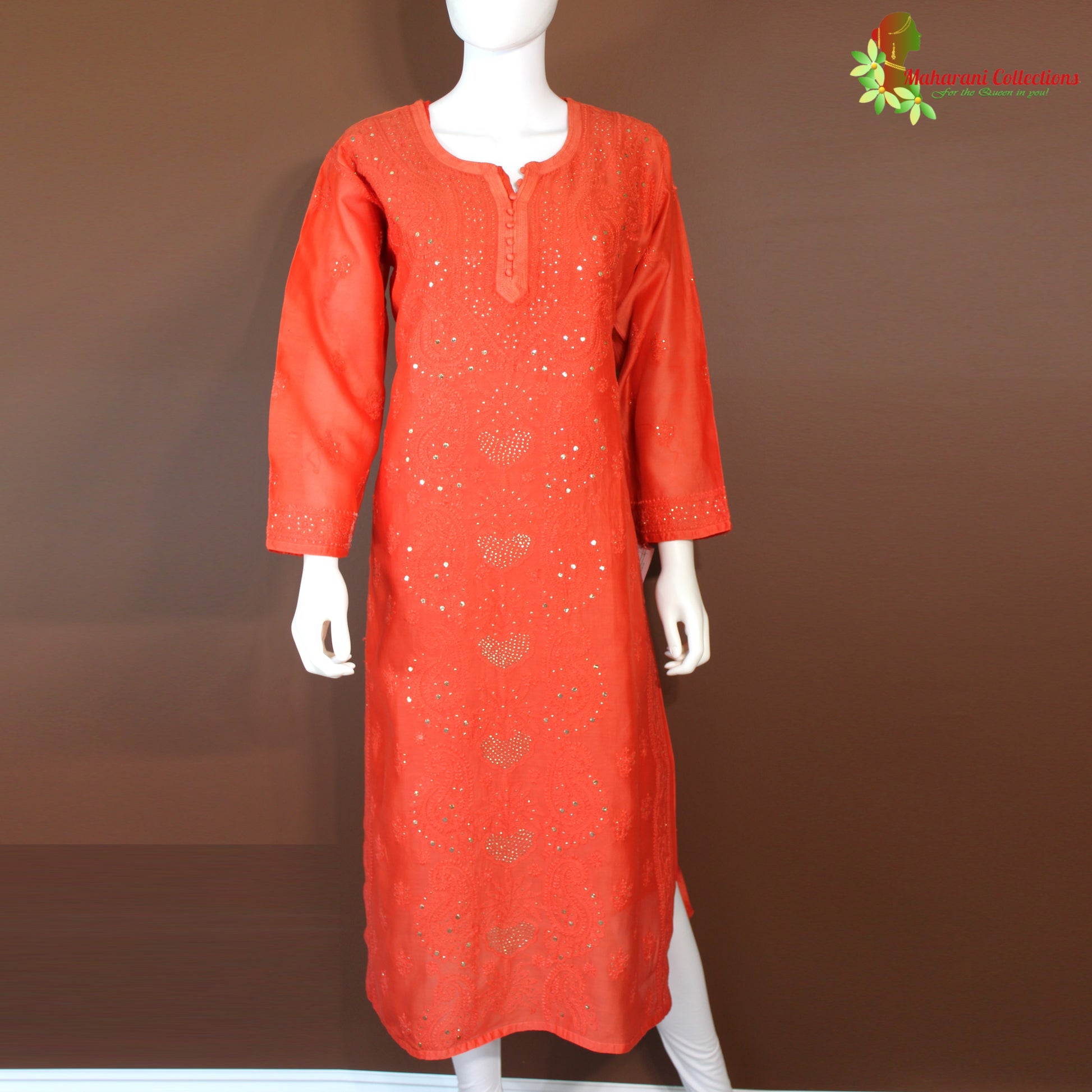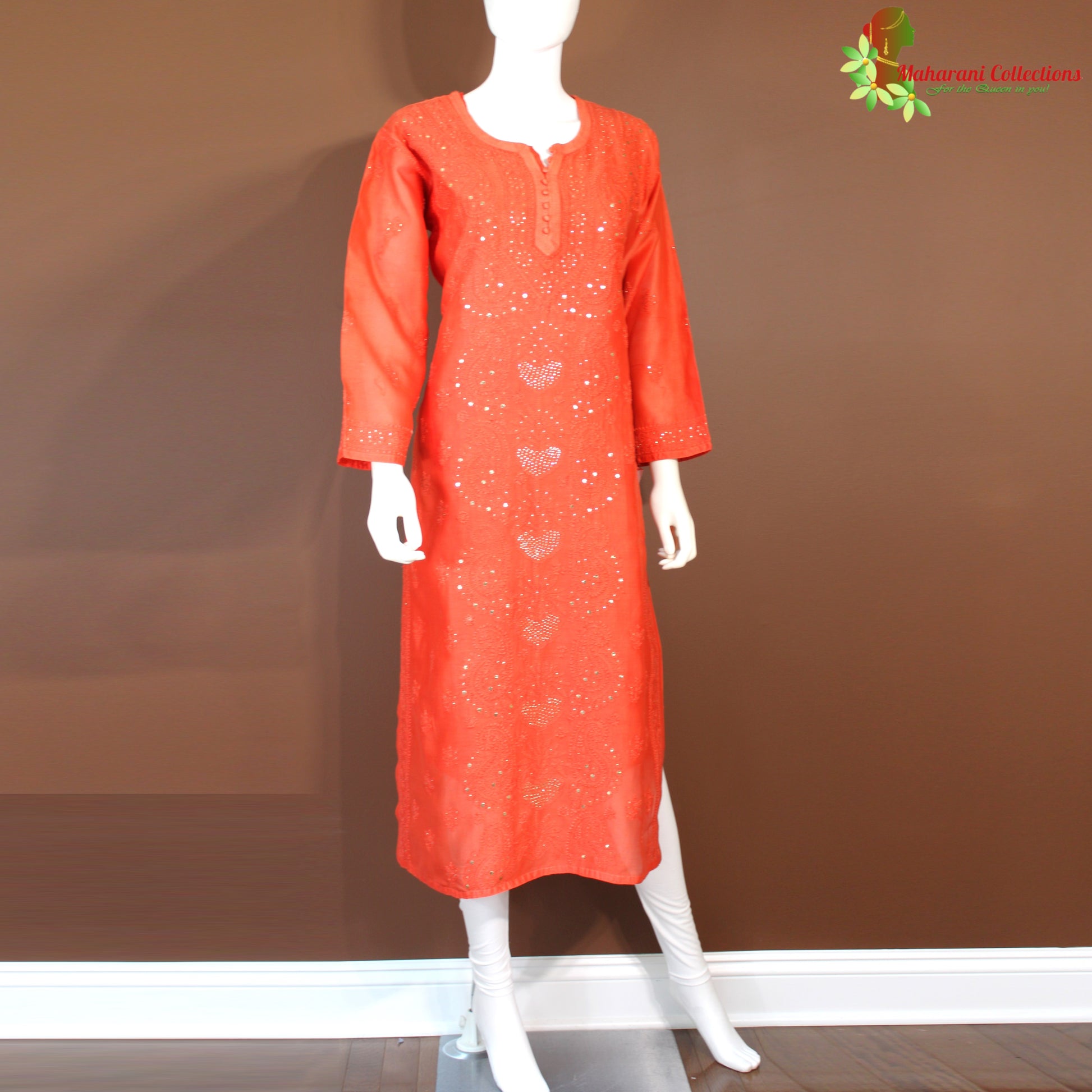 Maharani's Long Kurta with Attached Cotton Liner, Over All Thread and Mukesh Work. Cotton Leggings pant included.