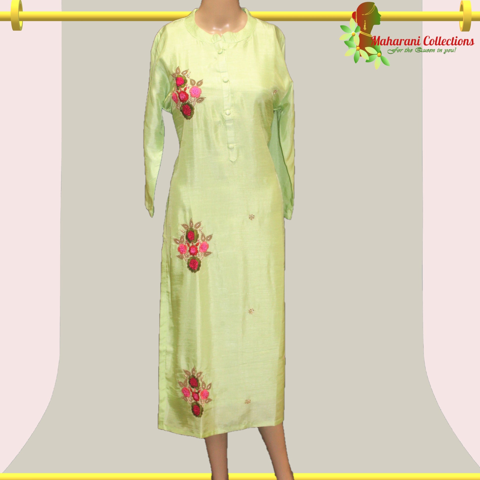 Pure Chanderi Silk Kurta Top - Pear Green (M)