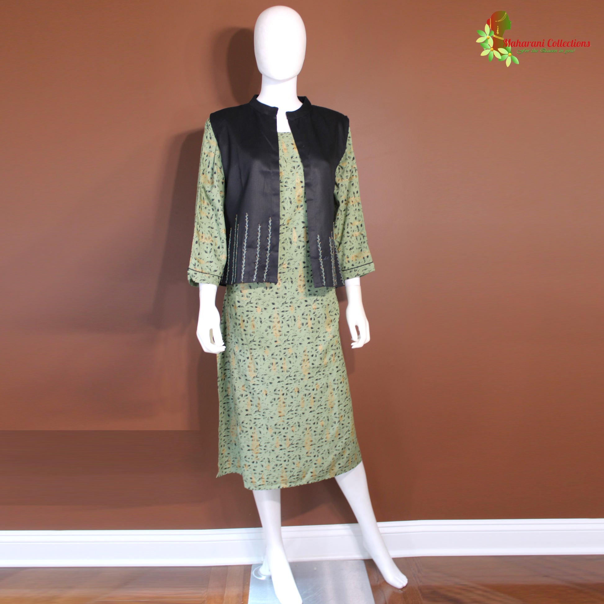 Maharani's Soft Cotton Kurta Top with Jacket - Sea Green (XL)