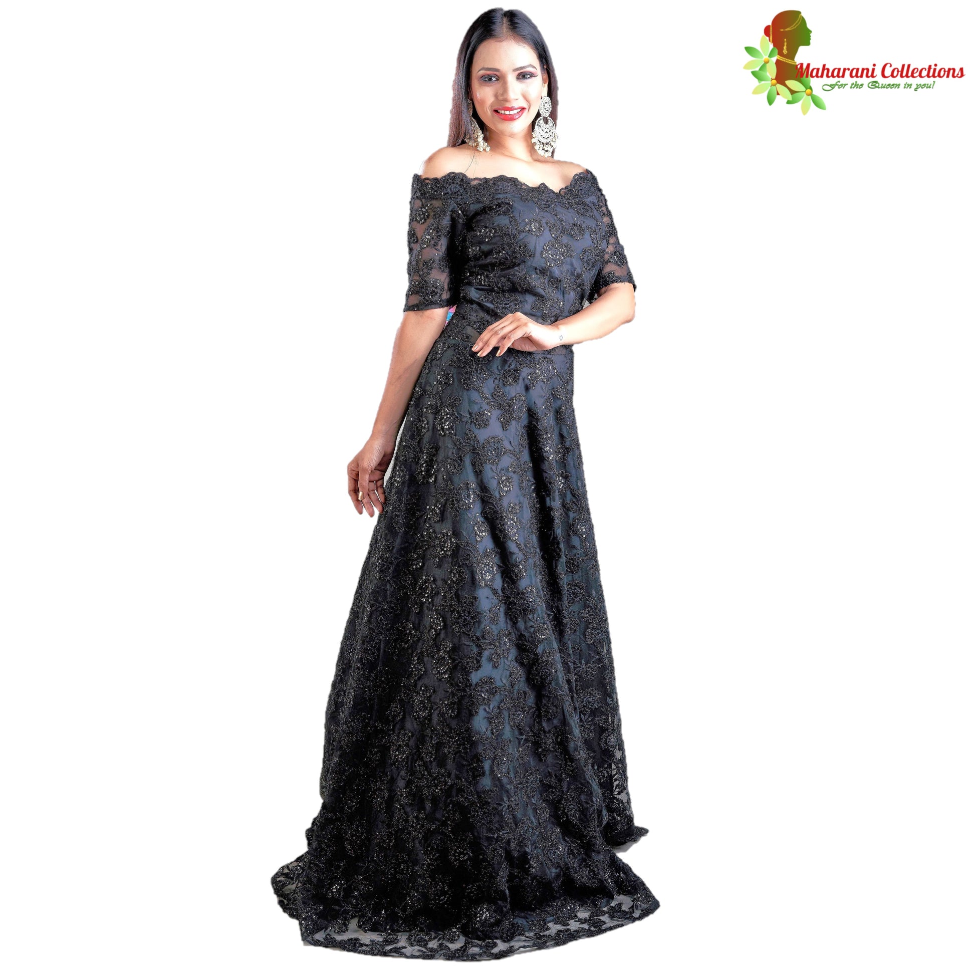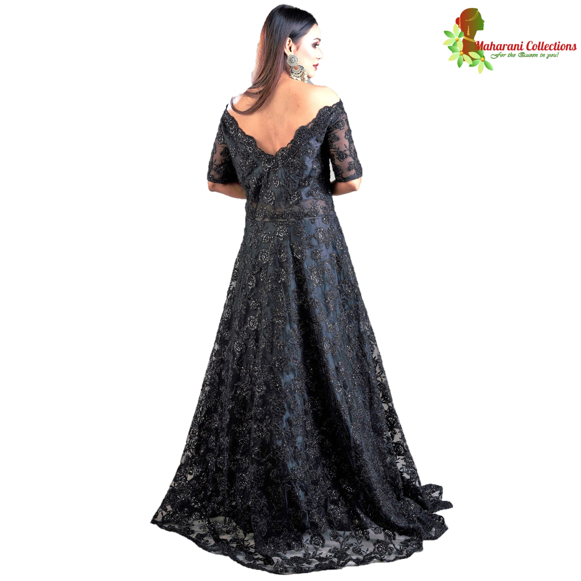 Designer Ball (Princess) Gown - Black with Zari, Sequins, Thread and Net Work