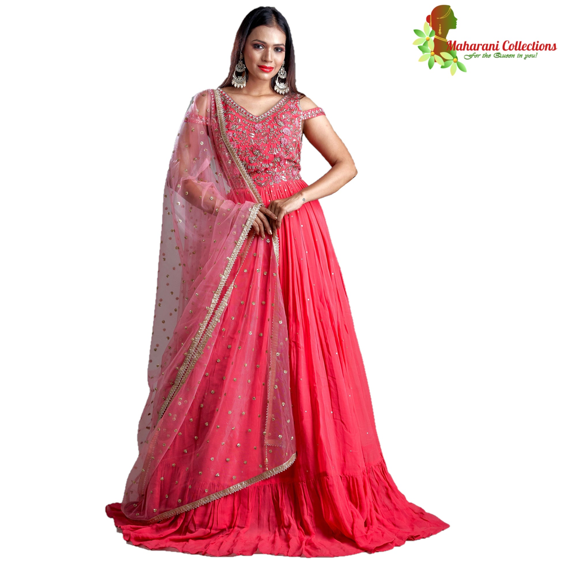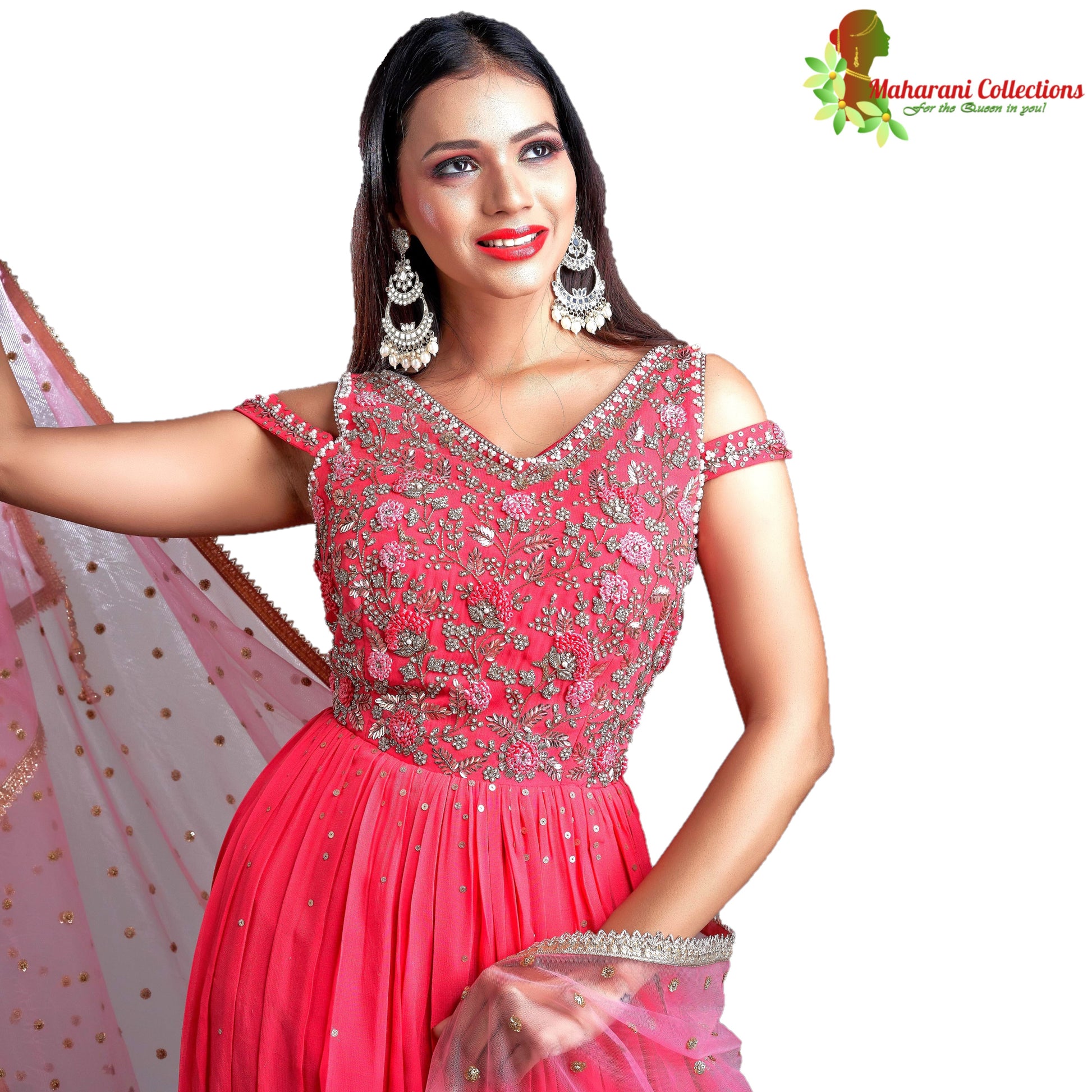 Maharani's Designer Ball (Princess) Gown - Pink/Peach with Zari, Pearl & Sequins Work