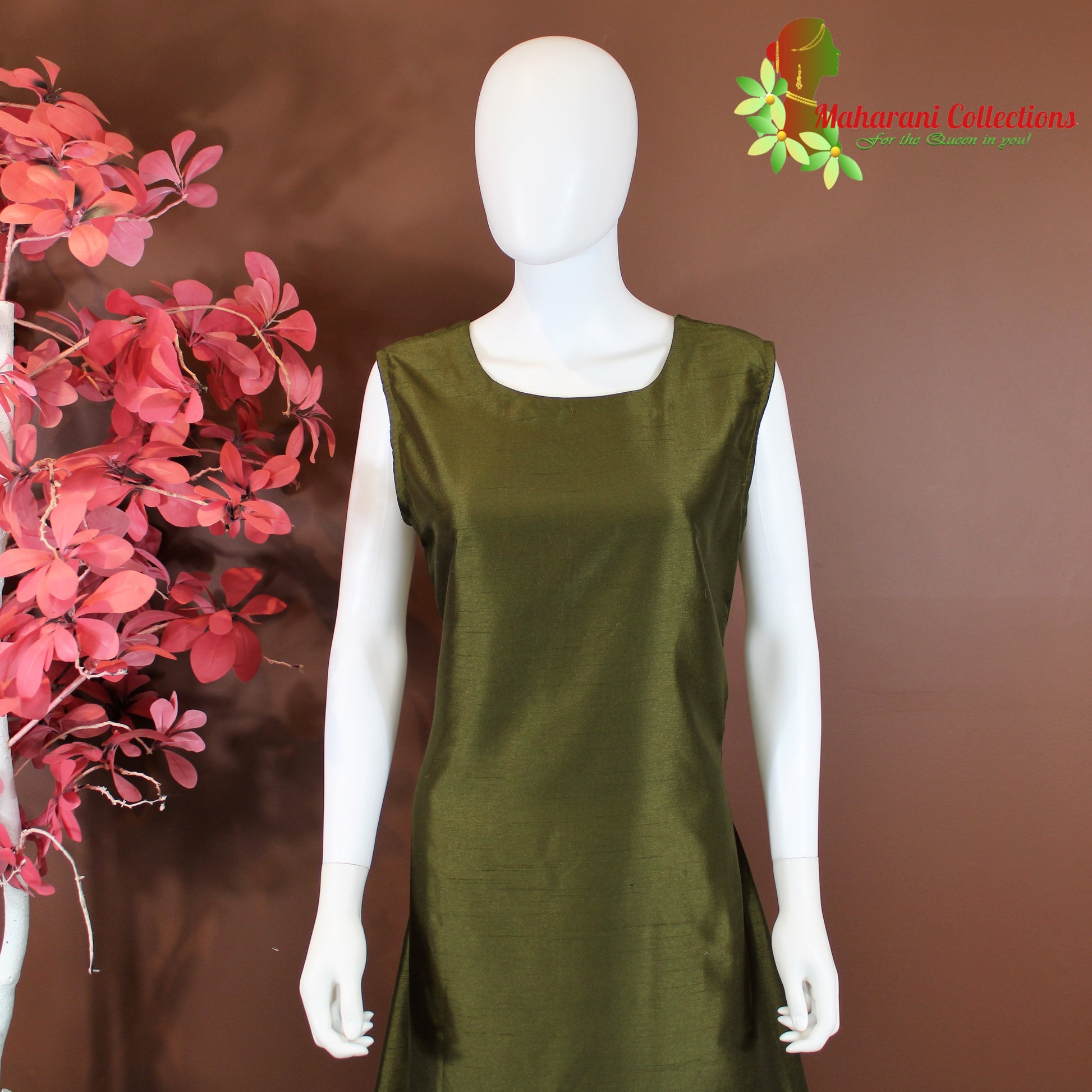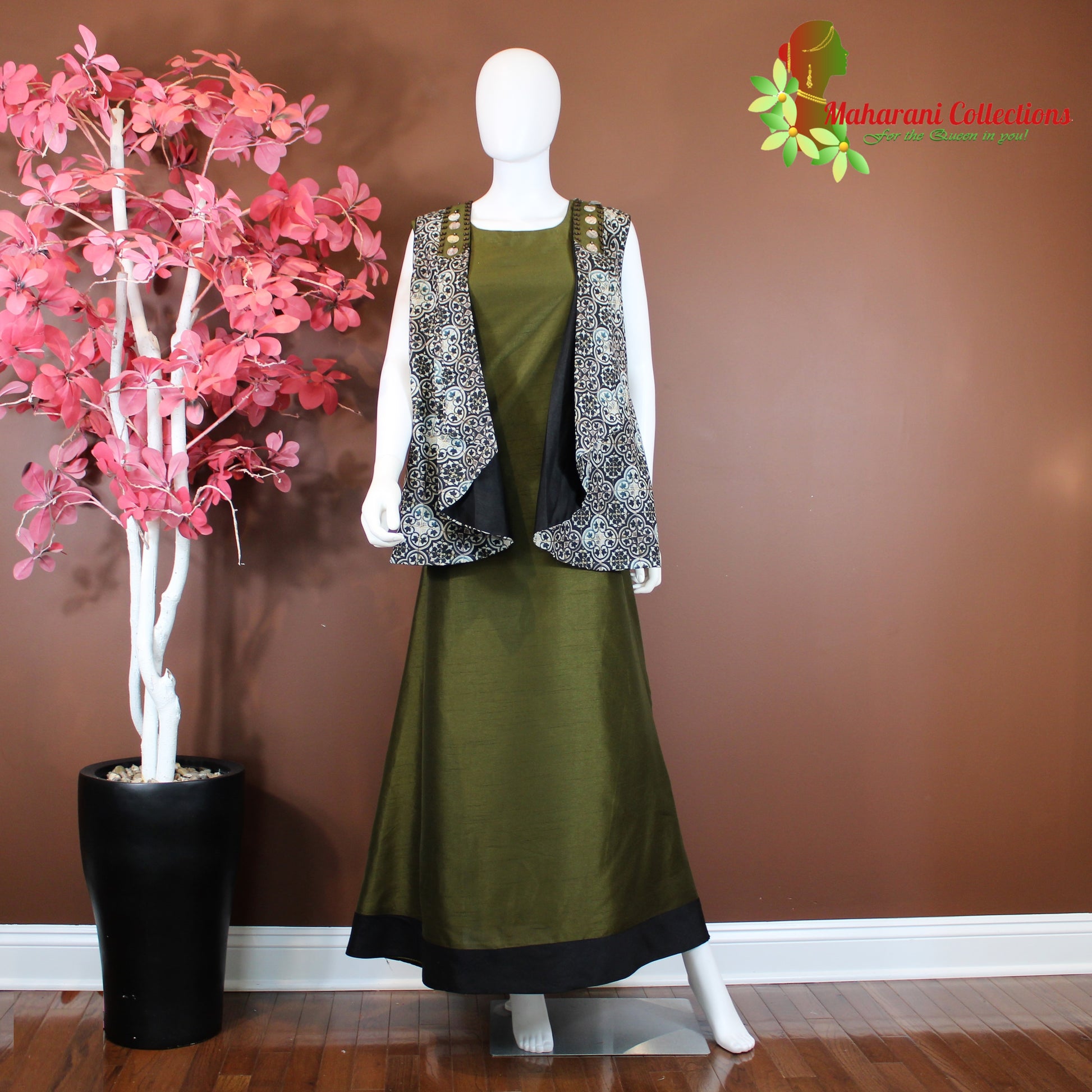 Maharani's Designer Gown - Henna Green (XL) - Tussar Silk